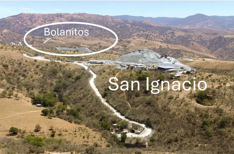 Figure 6: Proximity of the primary stockpiles at Bolanitos and San Ignacio. The Bolanitos mill is located within two kilometres of the San Ignacio project; the two properties are contiguous and share the same geology.