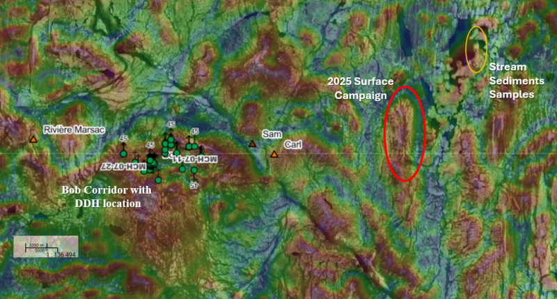Picture 1. Manicouagan Project with Bob corridor drill zone in relation to the 2025 campaign