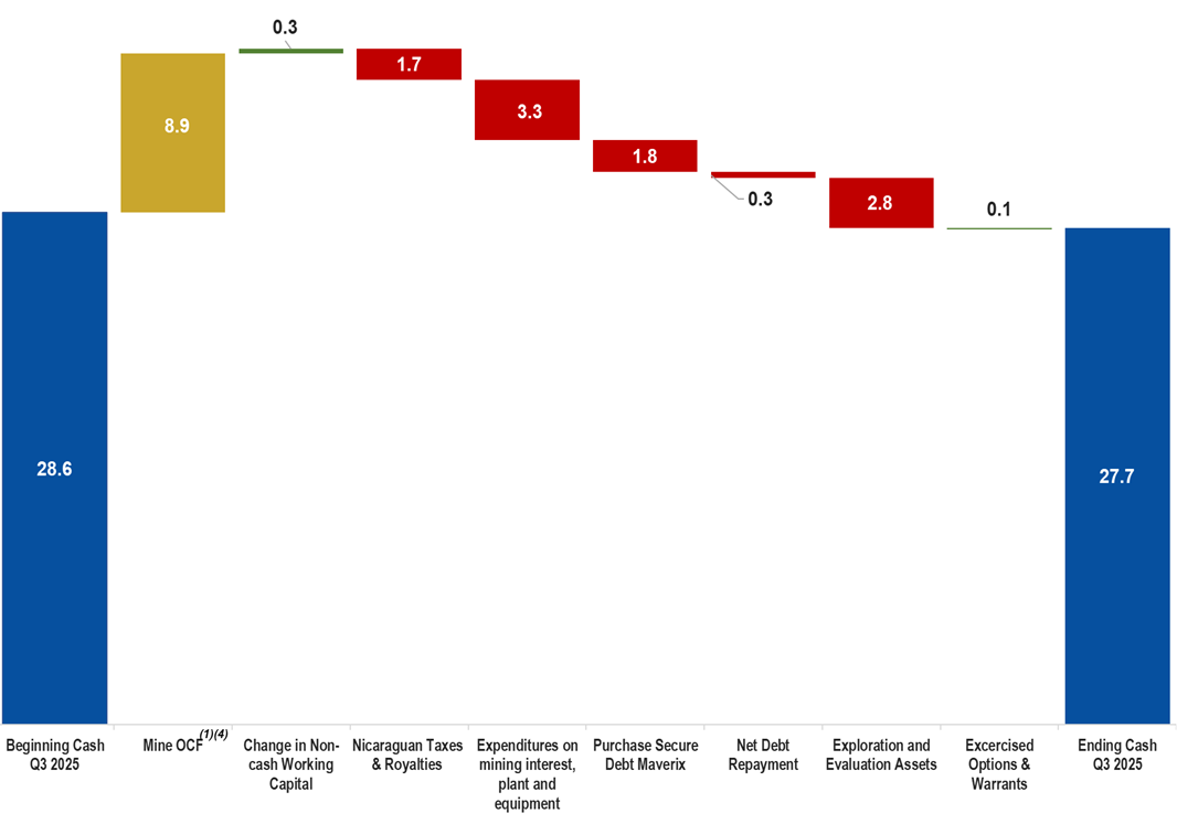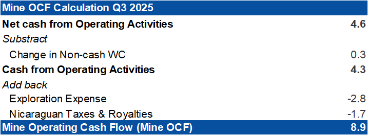 Q3 2025 – Mine OCF Calculation and Cash Reconciliation (in $ million)