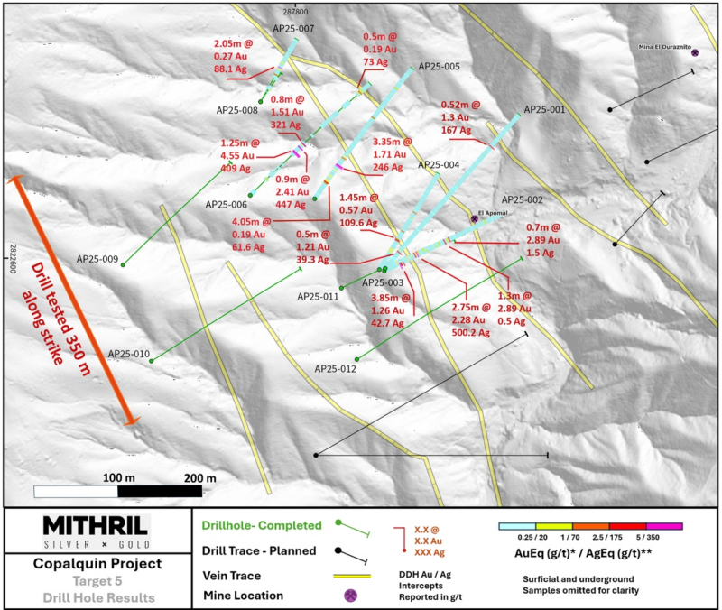 Mithril Intercepts High-Grade Silver At Target 5 Returning 1,714 G/T AGEQ (5.8 G/T AU, 1,308 G/T AG) Over 1.0 M At The Copalquin District, Mexico