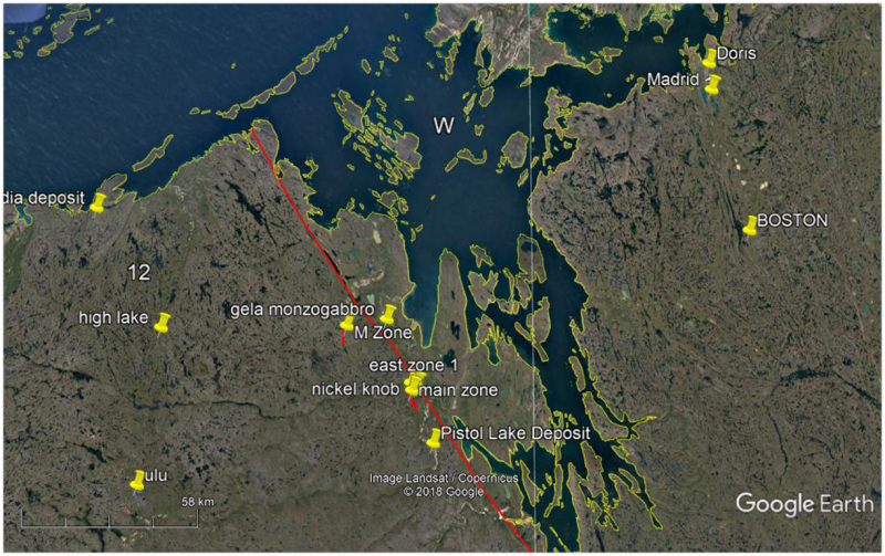 The West Gold claim is underlain by the same Archean amphibolite-facies geology that hosts mineralization at Turner Lake and lies near the 300 km-long regional Bathurst Fault, a major structural corridor favorable for gold deposition. The property is located 26 km north–northwest of Turner Lake and 10.6 km northwest of the Gela Lake project (Figure 2).