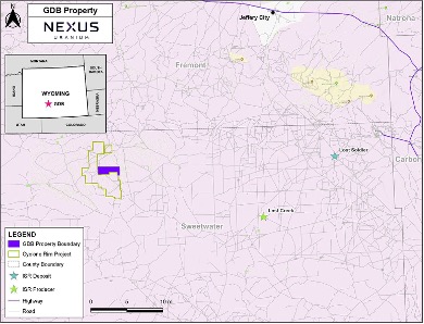 The GDB project is located southwest of Jeffrey City and northwest of Wamsutter, Wyoming. The property adjoins Premier American Uranium’s Cyclone Project and is readily accessible by gravel and maintained roads administered by the Bureau of Land Management (“BLM”).