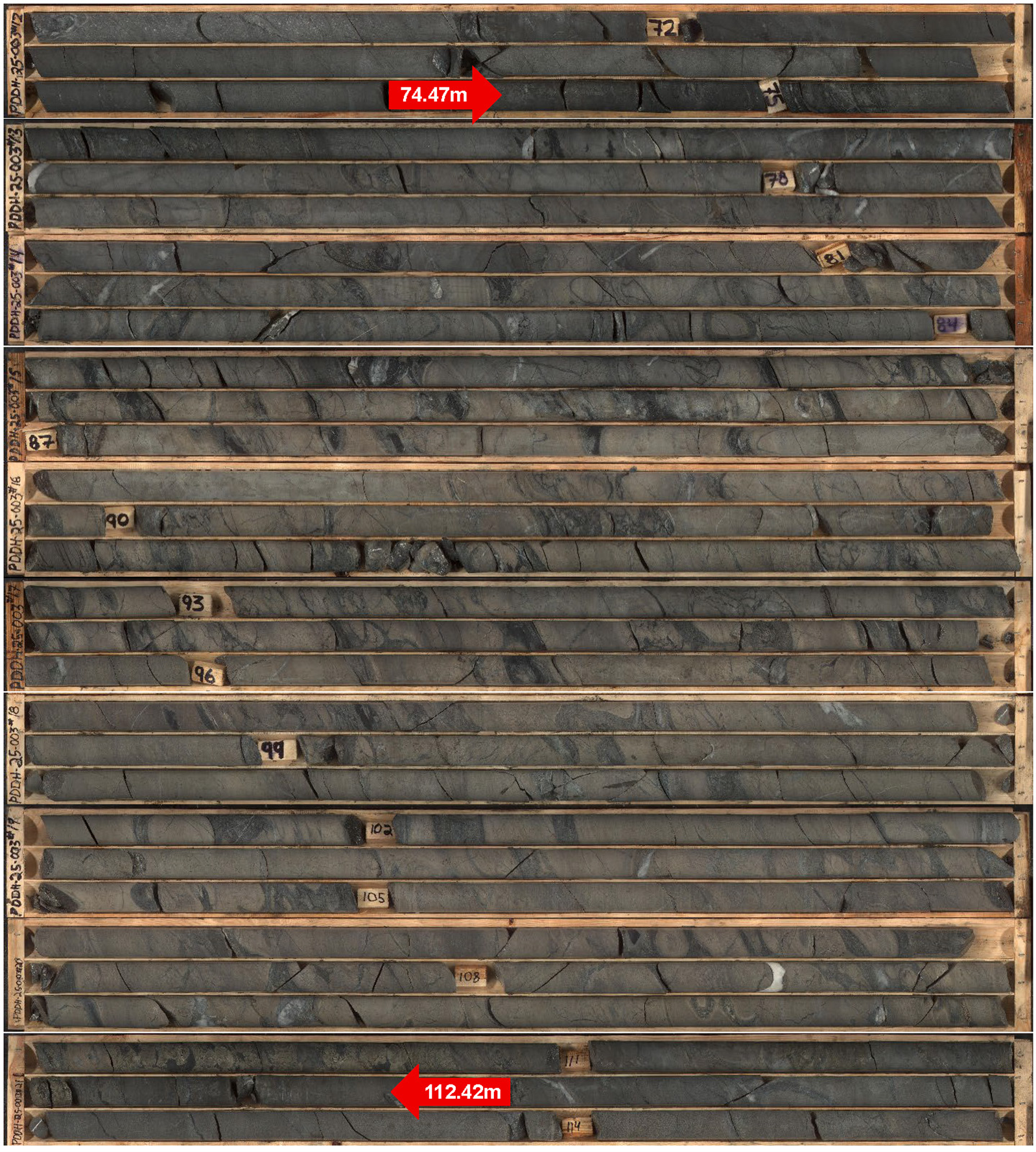 N2-25-003: 152.9 metres of target mineralization was intercepted beginning at 23.1 metres downhole, with multiple intervals over 30 metres in width up to 37.9 metres.