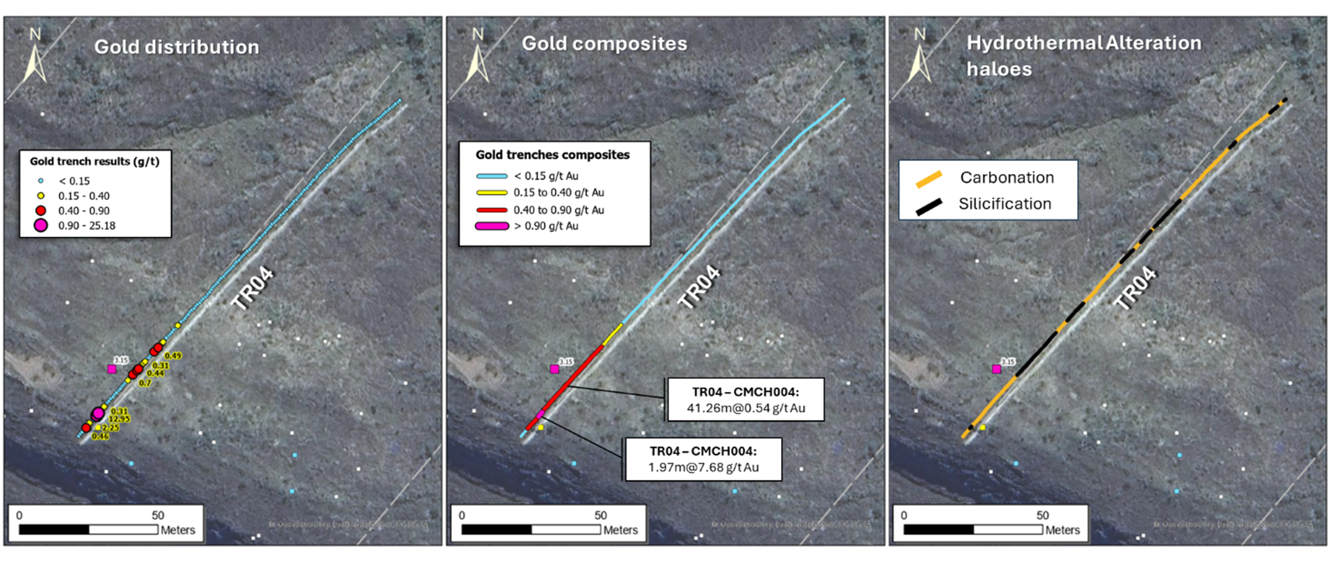 CMCH06: 24.78m @ 0.41 g/t Au, including 11.39m @ 0.50 g/t Au, and 12.94m @ 0.52 g/t Au