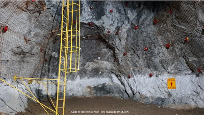 Stage 2: Underground Emergency Paths and Ventilation Chimneys (completed November 2, 2025): Critical upgrades and adaptations were made to ensure secure emergency exit raises, including the finalization of the emergency exit raise at Faina, and the overall enhancement of underground ventilation systems (see Figure 4).