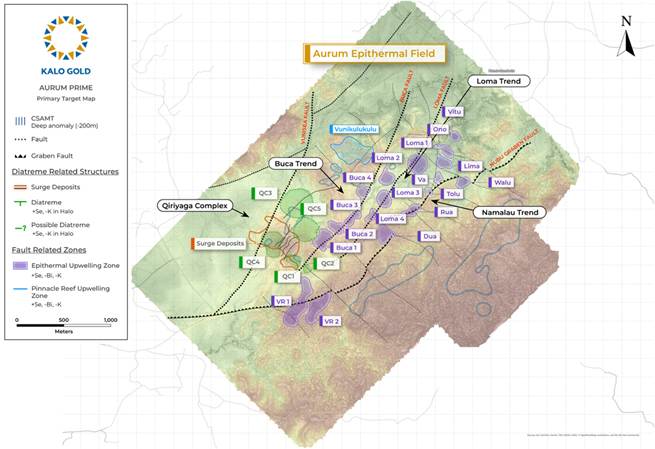 VANCOUVER, BC / ACCESS Newswire / December 1, 2025 / Kalo Gold Corp. (TSX-V:KALO) (“Kalo” or the “Company”) reports that advanced mineralogical analysis has confirmed gold in surface silica caps and validated the preserved vertical architecture of the epithermal system along the Namalau Trend, providing direct vectors for deeper drilling in 2026.