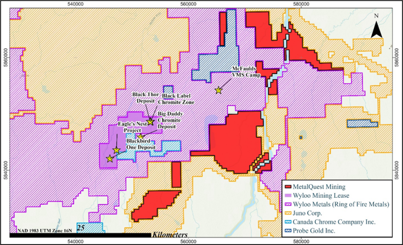 Figure 1: Regional claim map highlighting landholders in the Ring of Fire and the location of MQM’s ROF-1 Project.