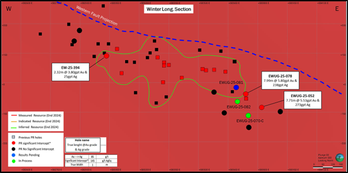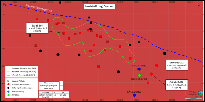 Exploration drilling at the Navidad area includes EWUG-25-078 grading 5.8 grams per tonne (“g/t”) gold and 126 g/t silver over 8.0 metres and 4.88 g/t gold and 50 g/t silver over 4.6 metres (true width)