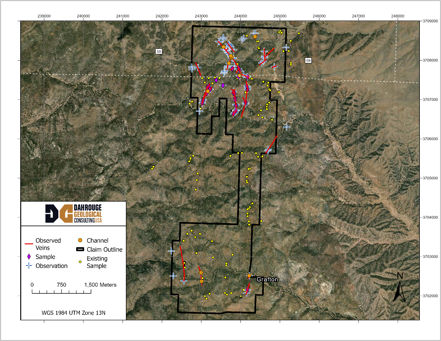 Observations from the 2025 field program confirm that the Winston Project hosts a well-developed epithermal vein system with geological characteristics consistent with preserved precious metal mineralization. The presence of multiple vein orientations, intersecting structures, and extensive historic works suggest that mineralization is structurally controlled and may occur in stacked or plunging shoots.