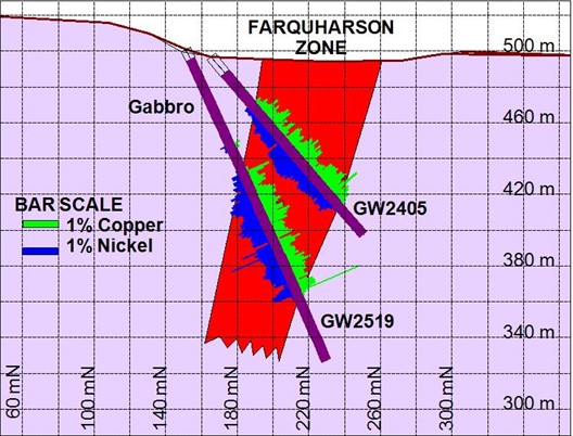 Figure 1 Farquharson Zone Cross Section DDH GW24-05 and GW25-19