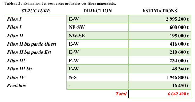 The 2022 technical report was compiled and authored by Mr. Omar Guillou, who led the integration of historical data, field observations, and sampling results into a cohesive evaluation of the concession’s potential. Dr. Abdelaziz El Hadi, a senior structural geologist and academic researcher with over three decades of experience in Moroccan mineral systems, contributed to the geological interpretation and structural modeling. His work focused on vein geometry, structural stacking, and volumetric projections that informed the historical estimate. See Table 1 (Tableau 3) Historical Estimation of Insitu Tonnage by Vein (title modified) from the 2022 report and Table 2: Reconstructed Tons and Grade by Vein.