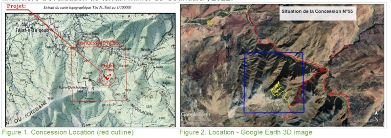 Statement: The potential quantity and grade are conceptual in nature, based on historical production and the 2022 geological report (non-NI 43-101 compliant), “Rapport Technique et Financier sur la Concession Minière de Goundafa – Commune d’Ijoukak, Province d’El Haouz, Maroc”, authored by Omar Guillou that identified 6.62 Mt. There has been insufficient exploration to define a mineral resource, and it is uncertain if further exploration will result in delineation of a mineral resource.