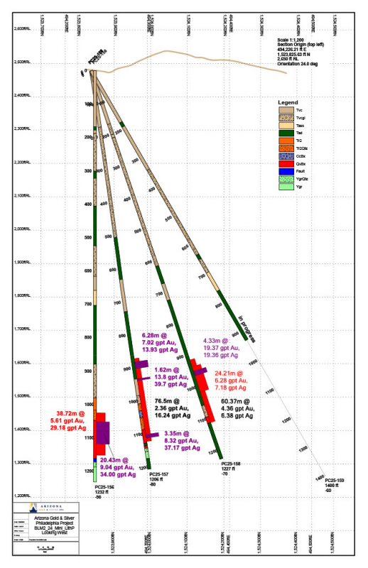 Arizona Gold & Silver Core Hole PC25-158 Intersects 60.37 Metres at 4.36 gpt Gold and 6.38 gpt Silver, Including 4.33 Metres at 19.37 gpt Gold and 19.36 gpt Silver on the Philadelphia Project, Arizona