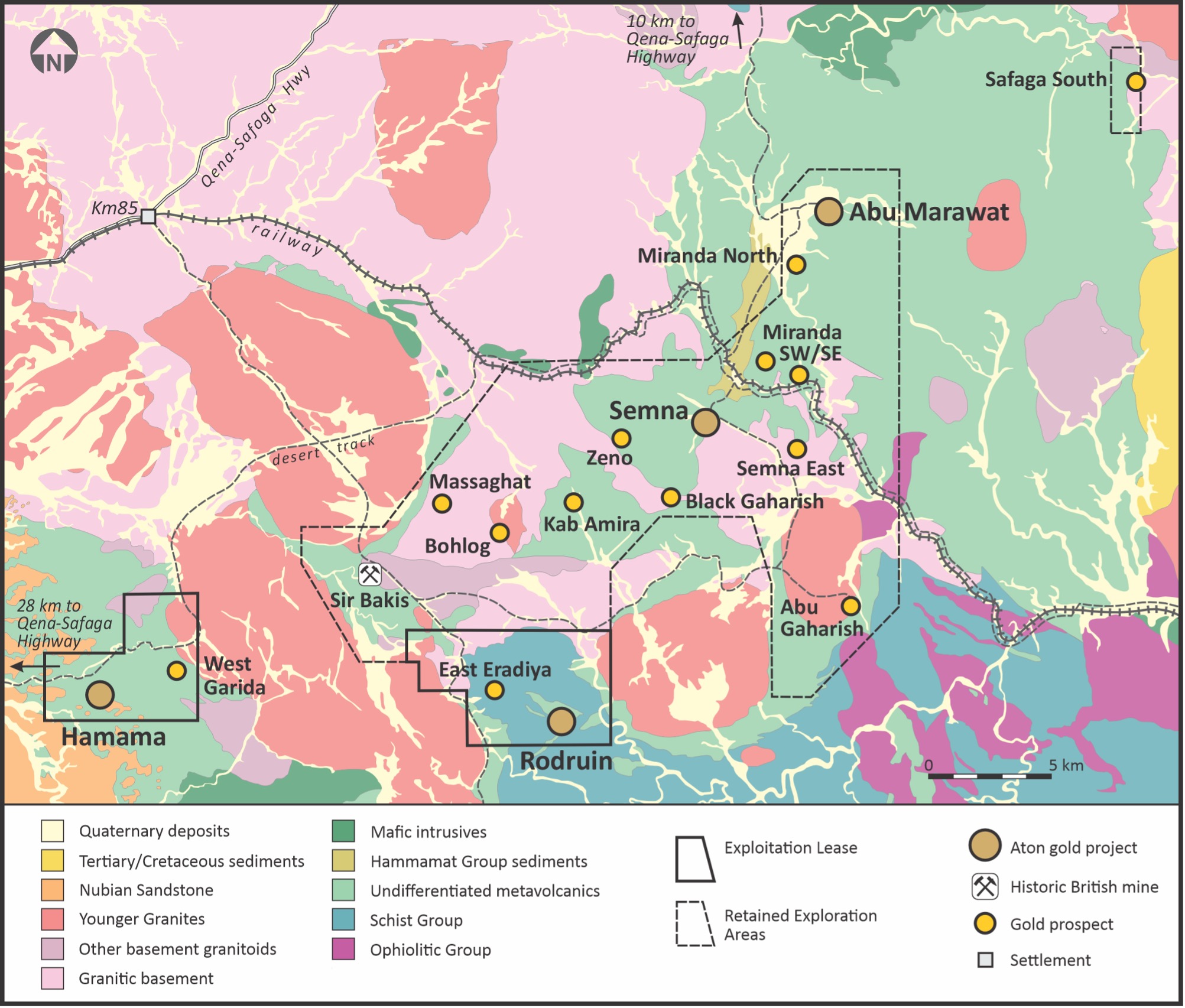 Aton Resources Inc. (AAN:TSX-V) is focused on its 100% owned Abu Marawat Concession (“Abu Marawat”), located in Egypt’s Arabian-Nubian Shield, approximately 200 km north of Anglogold Ashanti’s world-class Sukari gold mine. Aton has identified numerous gold and base metal exploration targets at Abu Marawat, including the Hamama deposit in the west, the Abu Marawat deposit in the northeast, and the Rodruin deposit in the south of the Concession. Two historic British gold mines are also located on the Concession at Semna and Sir Bakis. Aton has identified several distinct geological trends within Abu Marawat, which display potential for the development of a variety of styles of precious and base metal mineralisation. The Abu Marawat exploitation lease is 57.66 km2 in size, covering the Hamama West and Rodruin mineral deposits, and was established In January 2024 and is valid for an initial period of 20 years. The Concession also includes an additional 255.0 km2 of exploration areas at Abu Marawat, retained for a further period of 4 years from January 2024. Abu Marawat is located in an area of excellent infrastructure; a four-lane highway, a 220kV power line, and a water pipeline are in close proximity, as are the international airports at Hurghada and Luxor.