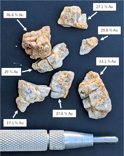 The reader is cautioned that the sample selection process described above is designed to identify high-grade samples which may not be representative. The disclosure is included because these samples will be used as a vector to guide future exploration activities specifically at the dam target.