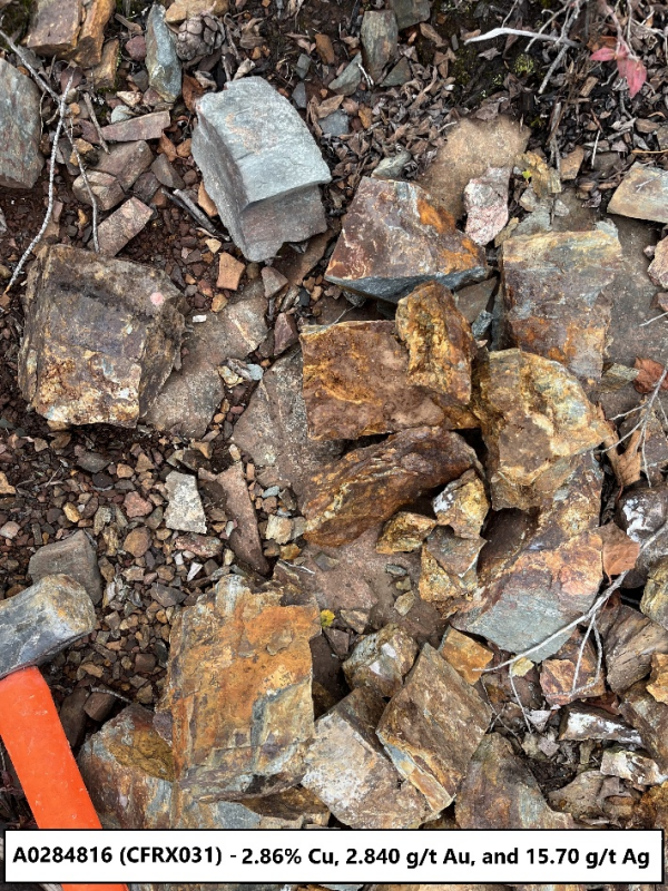 Figure 6: Sample CFRX033 from the eastern set of historic trenching on the MGZ.