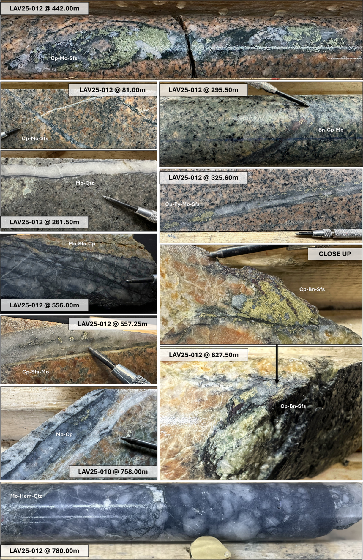 The alteration and mineralization styles observed in LAV25-012 further indicate proximity to a large, multi-phase Cu-Mo-Ag porphyry centre, with open potential both at depth and along strike.