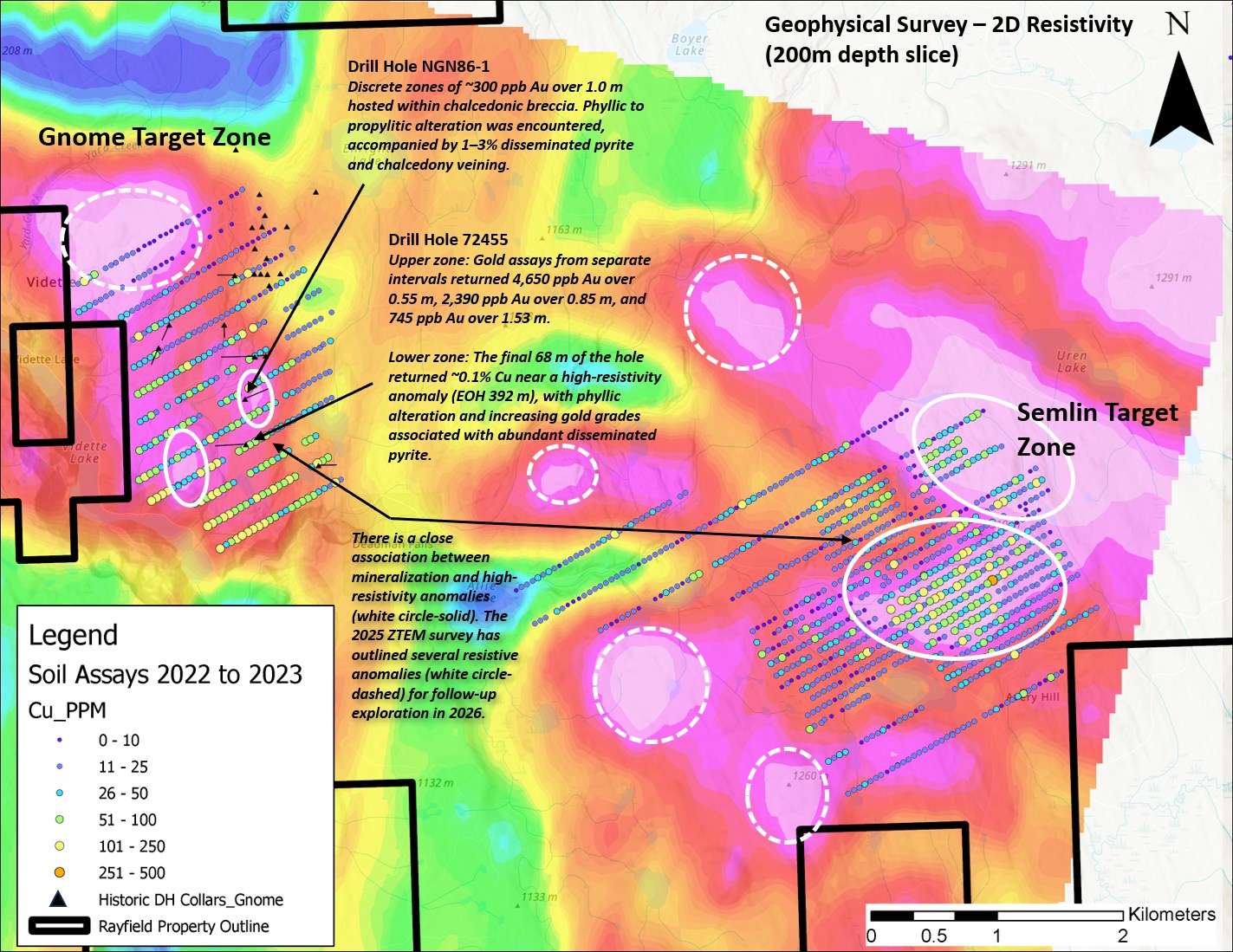 - The ZTEM geophysical survey identified a major resistive anomaly dipping to the northeast, interpreted as a buried porphyry system (see July 23, 2025 news release).