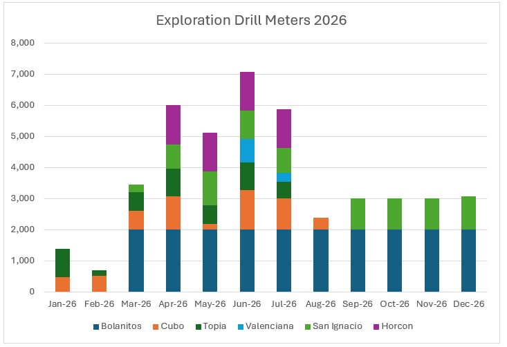 The GSilver team has been preparing for the 2026 drilling program for several months and is well advanced on all fronts, including the permitting of surface drilling campaigns at Bolanitos, Cubo, and Horcon. The Company expects to receive all necessary drilling permits before the end of Q2 2026; none of the Company’s planned underground drilling activities require additional permits.