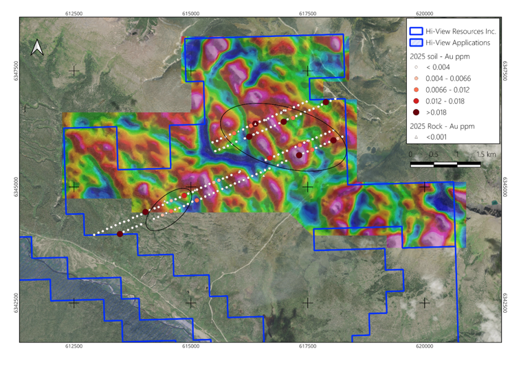In October 2025, Hi-View acquired four new mineral tenure applications totaling approximately 1,372.5 hectares. The applications cover multiple contiguous blocks designed to further consolidate the Company’s district-scale land position and capture extensions of favourable stratigraphy and structural corridors. Technical evaluation of these applications is ongoing.