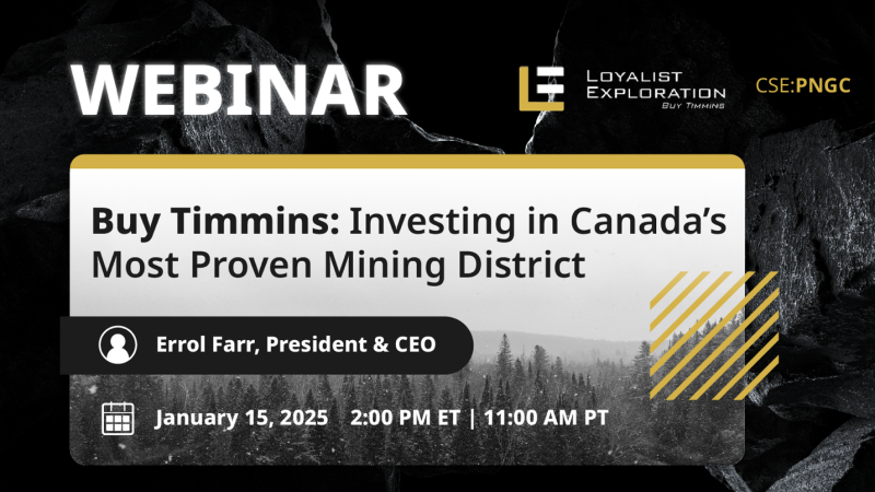 Upcoming January 15 Loyalist Exploration webinar covering properties in the Timmins Mining District.