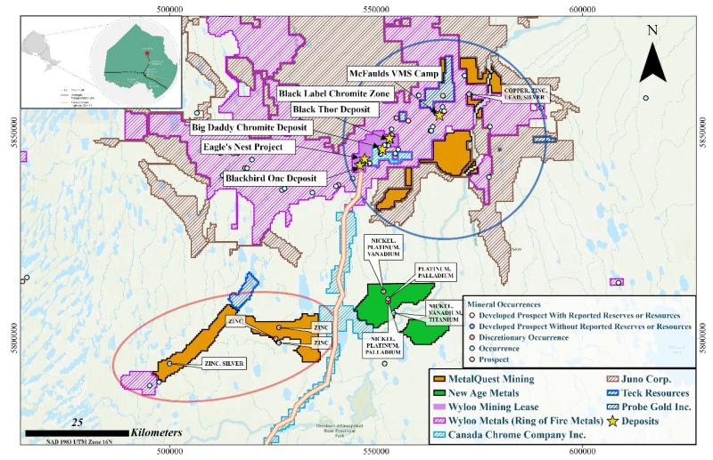 New Age Metals Inc., a significant shareholder of MetalQuest Mining Inc., has recently advanced into the Ring of Fire through the acquisition of new exploration properties, reflecting increasing exploration momentum within the district.