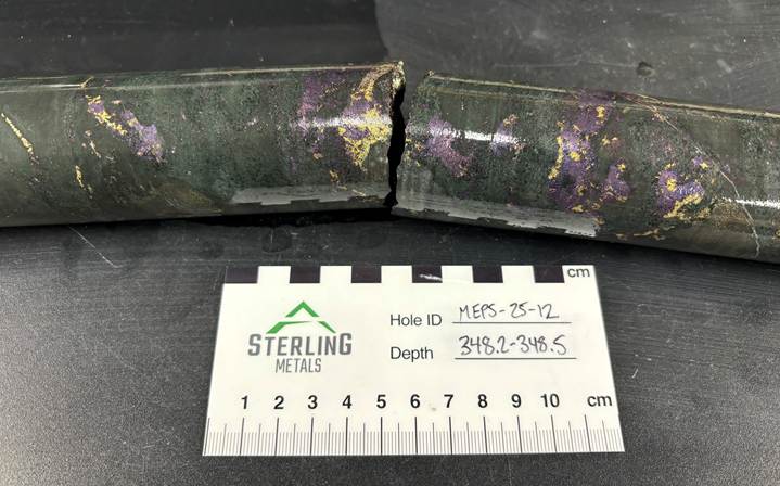 Building on the discovery made in MEPS-25-02, which confirmed a new style of high-grade copper-gold mineralization near surface, occurring approximately 200m south of the long, continuous copper interval in MJ-25-01 (see press release dated May 29, 2025), Sterling has demonstrated that the Soo Copper mineral system is substantially larger and richer than previously recognized, and that significant potential exists for an initial near-surface mineral resource that could be rapidly evaluated. Consequently, the Company accelerated its strategic plans by expanding the 2025 program, moving directly into a resource-exploration drilling program of the discovery area, and laying the foundation for a larger 2026 campaign.
