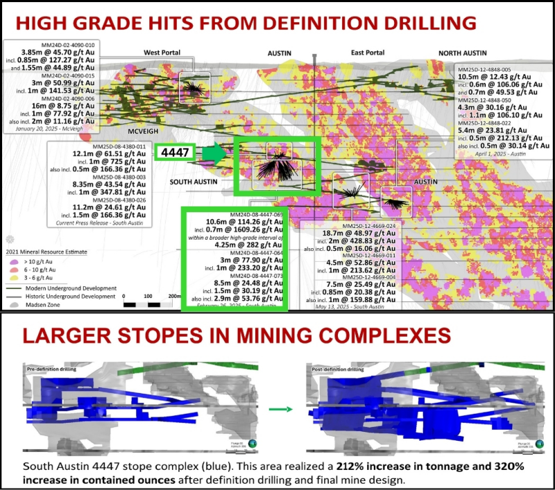 During Q1, 2026 of commercial production, mined ore will come predominantly from the 4447 area – a high-grade zone in South Austin that was defined last year. With that area driving tonnage, mill feed is expected to average better than 6 grams per tonne gold in the quarter.