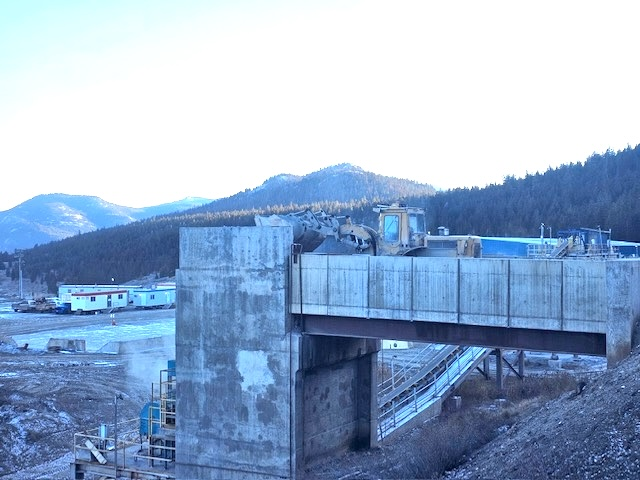 Dome Mountain Mineralized Material being loaded into Nicola mill’s primary crusher