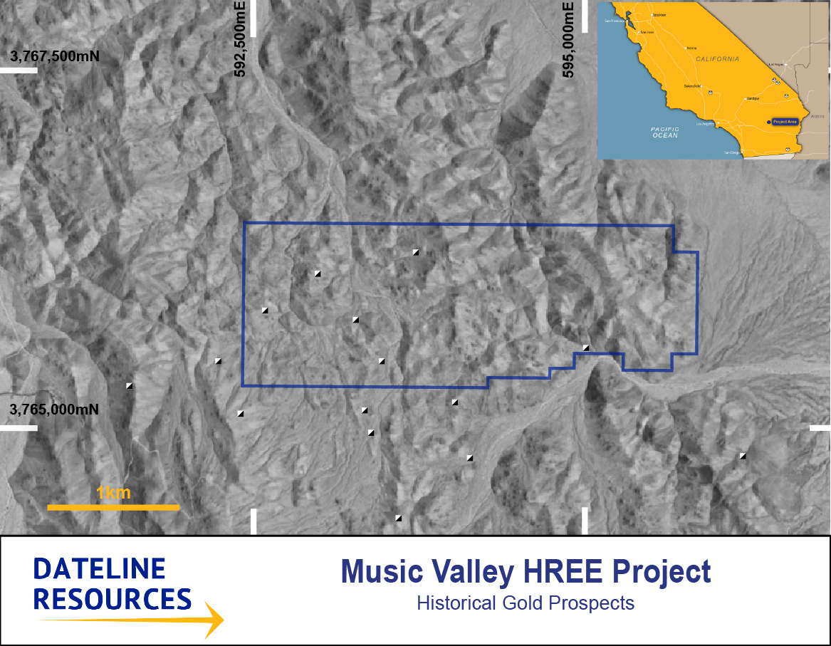 In February 2026, Dateline announced the acquisition of the Music Valley Heavy Rare Earth Project in Riverside County, California. The region has known HREE mineralisation from USGS rock chip sampling, however it has not been subjected to modern exploration techniques.