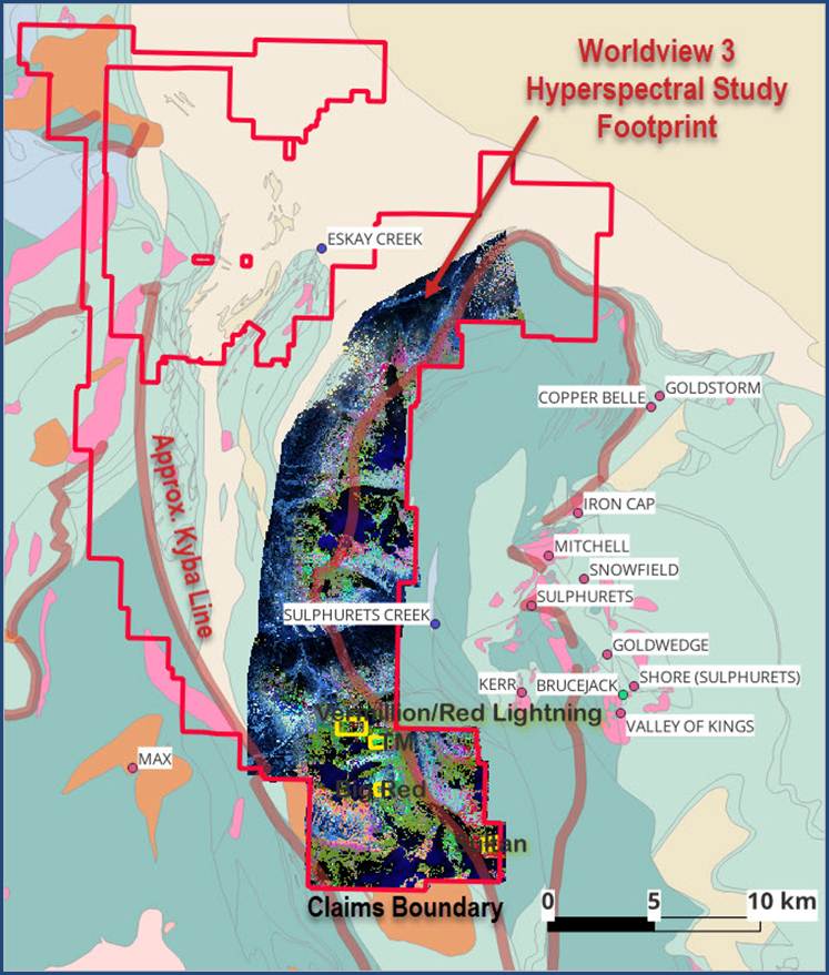 Eskay is also currently analysing Worldview 3 Hyperspectal Imagery covering the eastern half of the property which was purchased late in 2025 (Figure 2). Alteration patterns not visible in standard satellite images in hitherto unsampled areas have been identified and will be used to guide surface sampling by the Eskay field crew in 2026.