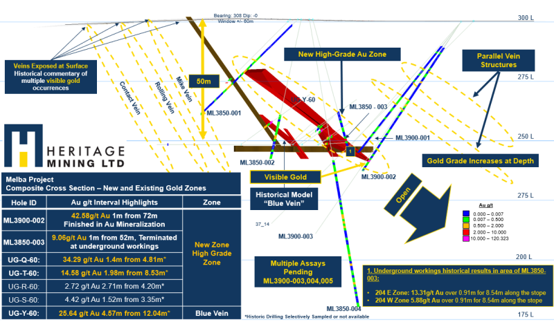 VANCOUVER, BC, February 10, 2026 – TheNewswire – Heritage Mining Ltd. (CSE: HML FRA: Y66) (“Heritage” or the “Company”) is pleased to announce confirmation of Visible Gold in Core in previously sampled Diamond Drill hole ML3900-002, outside the interval previously announced in press release dated February 9, 2026 at the Melba Mine Project (“Melba”) with its ongoing diamond drill program. Coarse gold has been identified in half core of ML3900-002 at 73.3m, downhole of the recently announced 42.57g/t Au over 1m from 72m (See press release dated February 9, 2026).