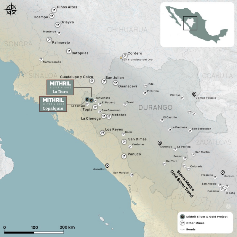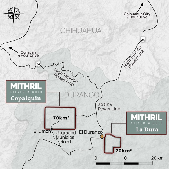 Figure 1 Mithril’s Copalquin and La Dura property locations in Durango State, Mexico