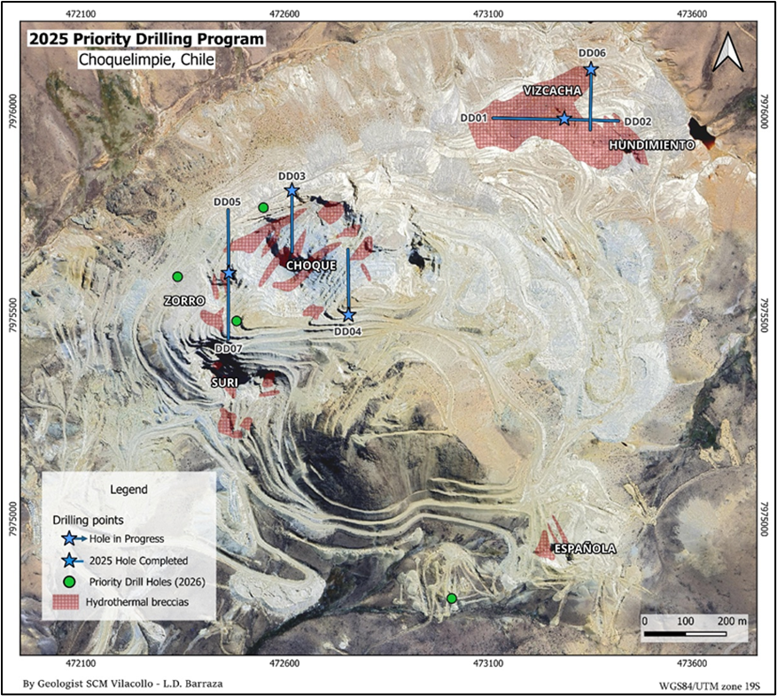 “We are pleased with the positive gold results from the first three holes of the 2025 Phase 3 drill program. These long intercepts are above the current sulfide resource grade, highlighting the potential to upgrade the resource. We are also encouraged by the geological team’s growing understanding of the controls on higher-grade mineralization. The presence of anomalous base-metal mineralization is particularly intriguing, and we look forward to receiving the re-assay results and integrating those data into the broader Choquelimpe geological model. These strong results add to our increasing confidence in the potential for substantial high-grade gold zones at depth and along strike beneath the existing open-pit resource. We look forward to providing further updates as results become available.”
