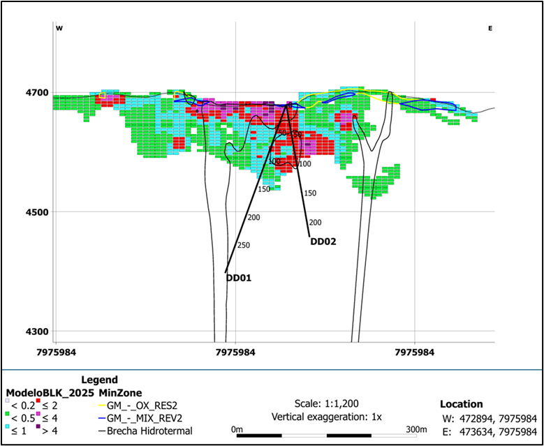 Hole MV25-DD03 has been drilled (depth of 275 meters) to explore the Choque Zone (Figure 1 & Table 1) at depth, below the area where higher gold grades have been calculated within the 2025 resource model (Wilson, 2025), (Figure 4). The hole intersected argillically-altered DAP.