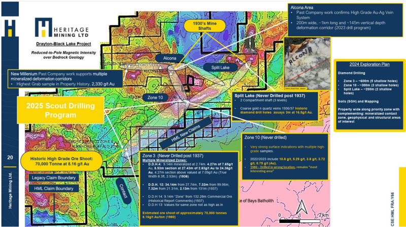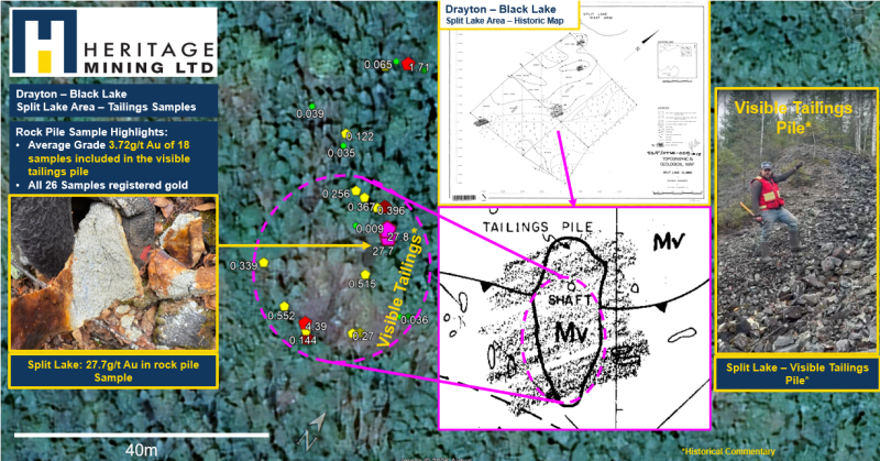 VANCOUVER, BC – TheNewswire – February 17, 2026 – Heritage Mining Ltd. (CSE: HML FRA: Y66) (“Heritage” or the “Company”) is pleased to provide an exploration update, further to press release dated October 23, 2025, the Company is one step closer to near term cashflow from historical tailings/rockpiles in the immediate vicinity of historical mine shafts at the Alcona Mine and Split Lake Mine at the Drayton Black Lake Project (“DBL”) located in Northwestern Ontario, Canada. The Company is also pleased to announce the fully permitted mill is willing to accept rock piles given initial grade estimates and requires additional testing for processing which has commenced at the time of this press release.