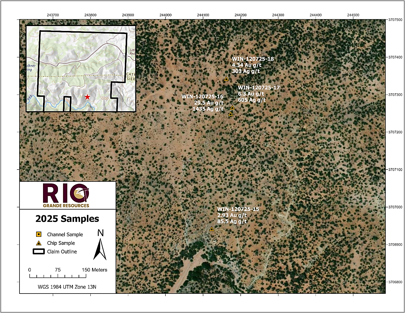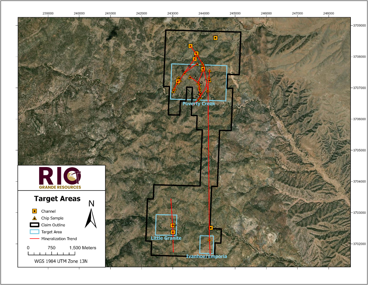 Jason Barnard, President and CEO of Rio Grande Resources, commented: “The Winston Project is built around past-producing mines, including Ivanhoe, Emporia, and Little Granite, which historically demonstrated the presence of high-grade gold and silver within structurally controlled vein systems. The December 2025 sampling program, including first-pass results from the newly defined Poverty Creek Trend, further supports the Company’s interpretation of an approximately 2.0 kilometre north-south, structurally controlled mineralized corridor across the Winston claim block and confirms that mineralization extends beyond historically developed areas into previously unsampled ground.”