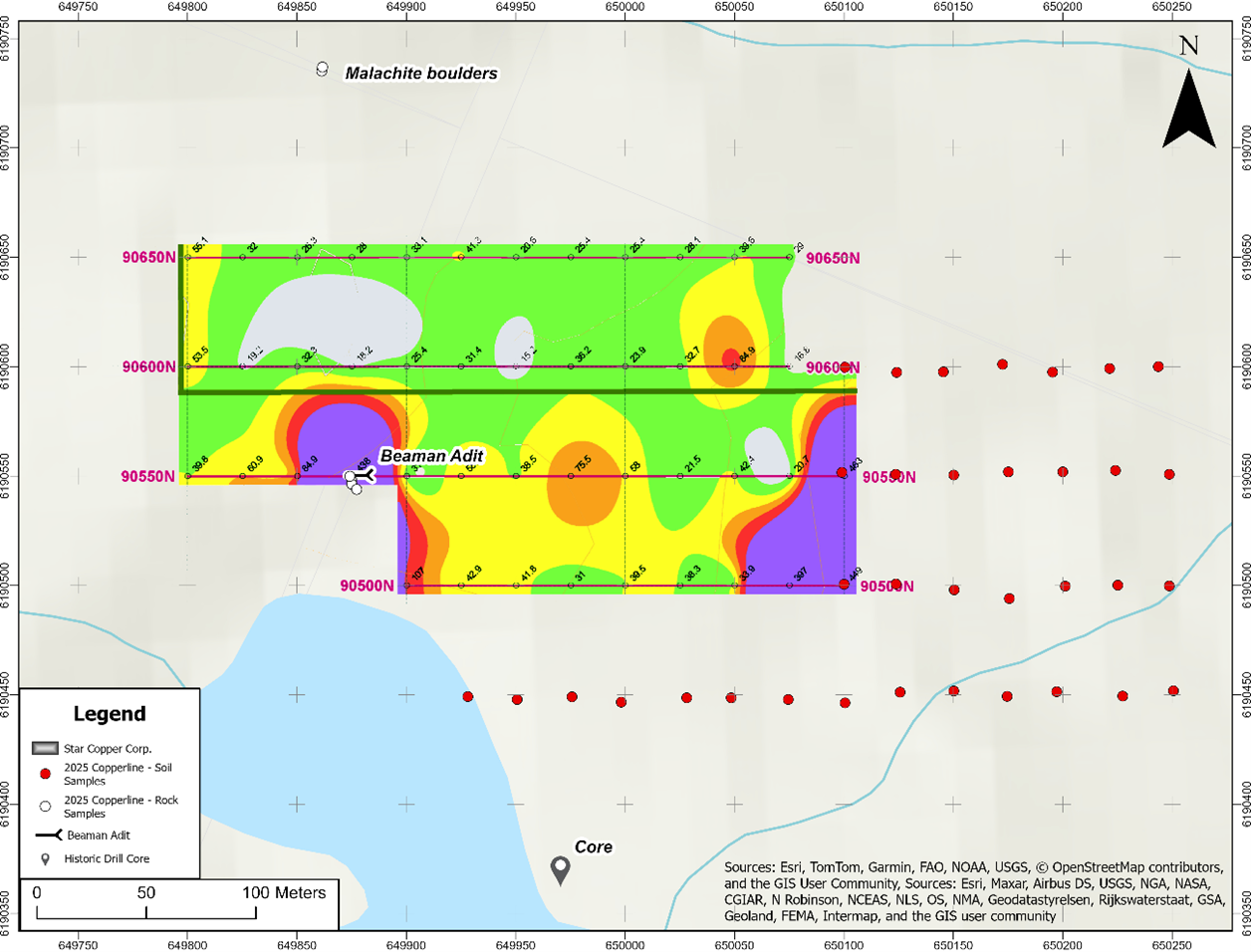 Table 2-Sample spacing: 25 m on all lines. Samples collected from B-horizon soils. Star Copper 2025.