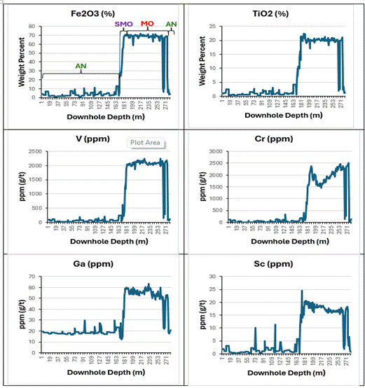 181 historic holes (36,614m) will be re-evaluated for iron, titanium, vanadium, chromium, gallium, scandium and other Rare Earth Elements (“REE”) potential.