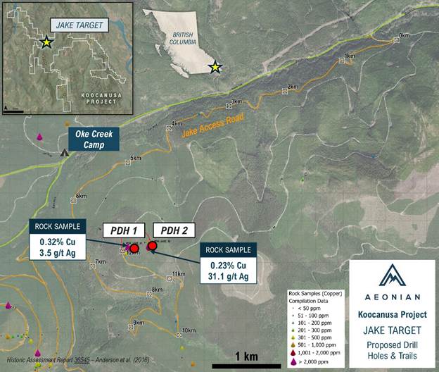 Aeonian Commences Inaugural Drill Program at the Jake Zone, Koocanusa Copper-Silver Project, Southeastern British Columbia