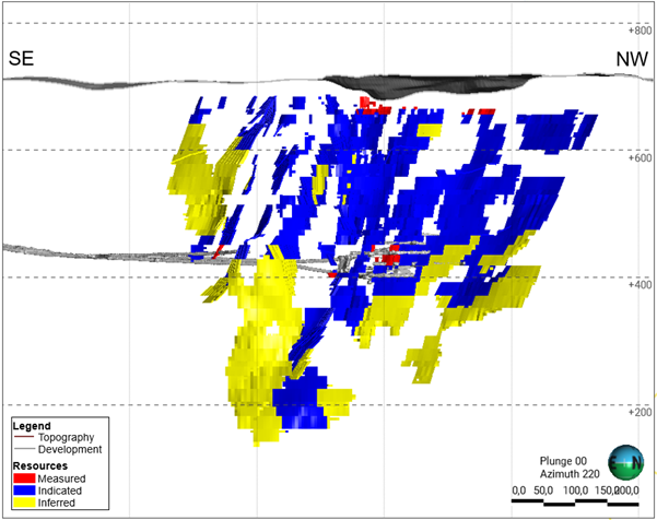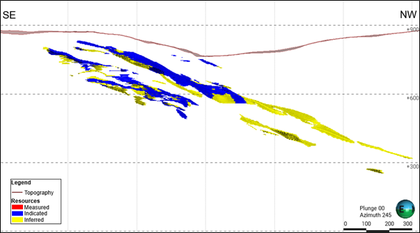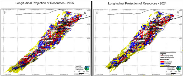 The year-over-year changes in the Mineral Resources distribution at the Pilar Mine are illustrated in the longitudinal section shown in Figure 10.