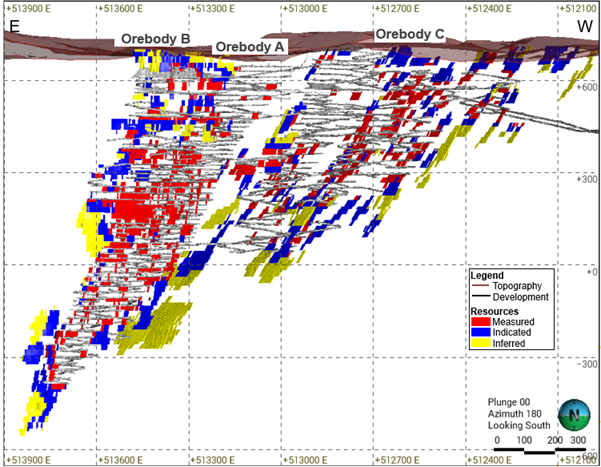 Figure 9. São Sebastião Deposit – Longitudinal Projection of Resources
