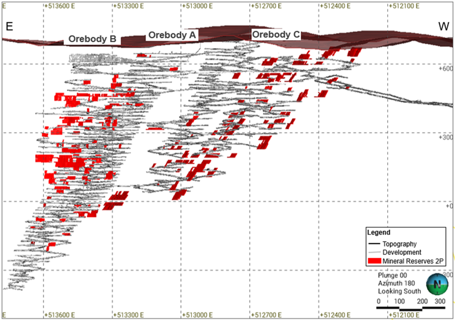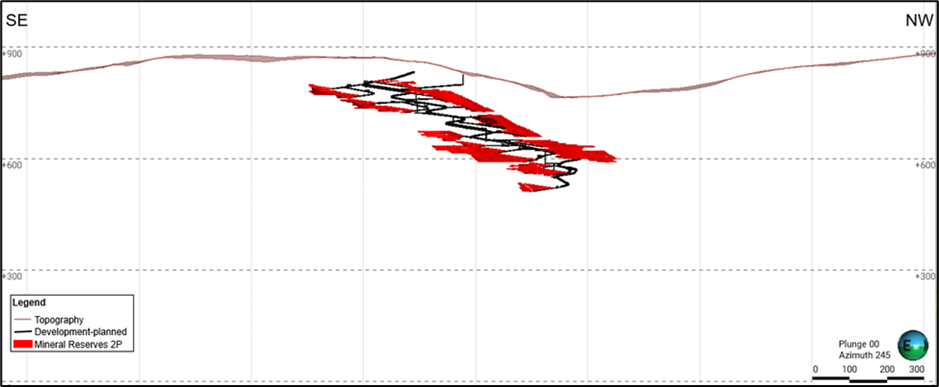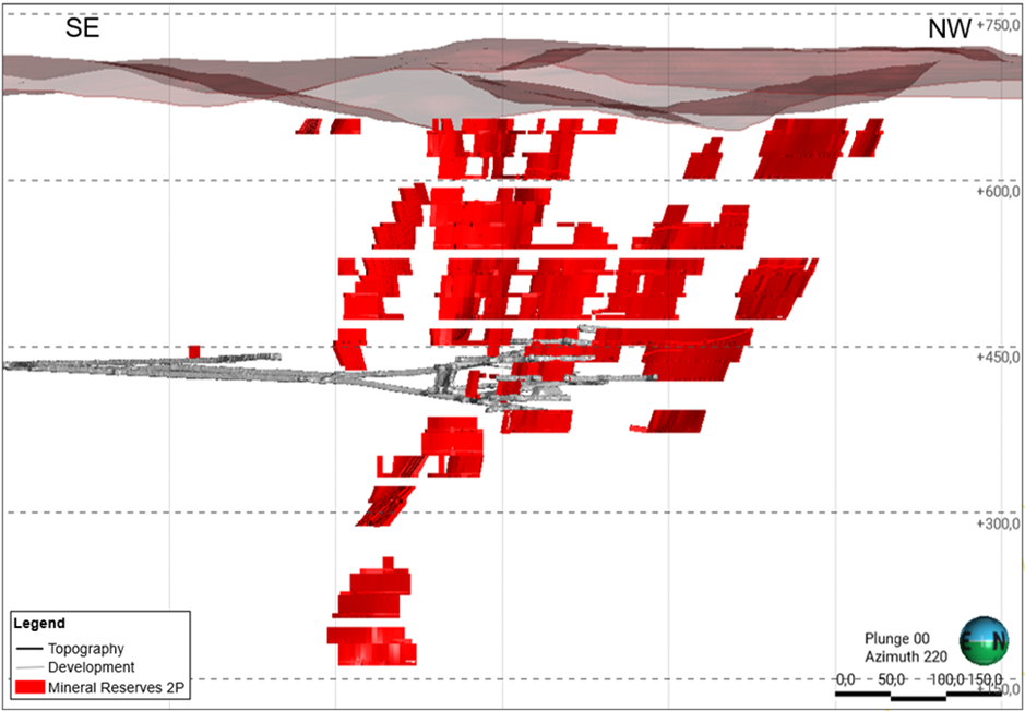 Figure 3. Turmalina Gold Mine – Longitudinal Projection of Reserves