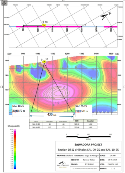 The 3 Cerro Blanco holes drilled on the west side of the litho-cap feature followed the drilling of hole SAL 04 – 25 on the east side of the litho-cap feature (see San Lorenzo press release dated January 26, 2026).