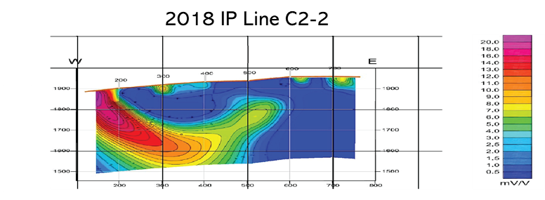 Figure 2 (above): IP Line & Hole Locations – East Side of Cerro Blanco Litho-Cap Feature