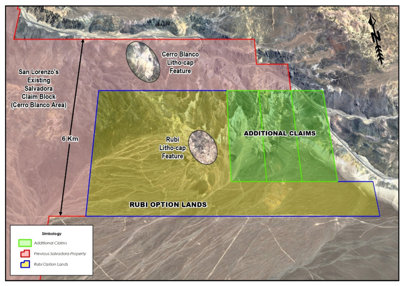 2)The acquisition of 3 claim blocks (Additional Claims”) contiguous with both the Rubi Project and San Lorenzo’s existing Salvadora claims block adding 900 hectares.