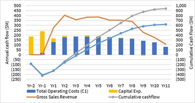 - Strong free cash-flow profile in early years2: Excellent profitability after initial ramp up at beginning of mine life; Year 2-8 average after-tax free cash flow of $160 M; continuation into additional resources and further anticipated resource extensions at depth.