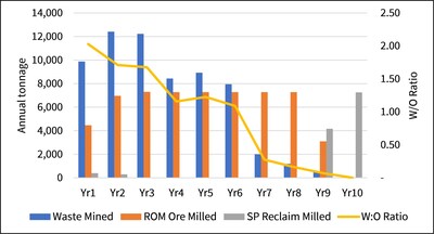 - Attractive production profile focused on early higher grades: After 1 year of ramp up, average sales of 102 thousand ounces (“koz”) AuEq from year 2 to 8, with average life of mine (“LOM”) sales of 85 koz AuEq at total cash costs of $1,748/oz AuEq. Ore body shows low LOM strip ratio of 0.89:1 with minimal pre-stripping.