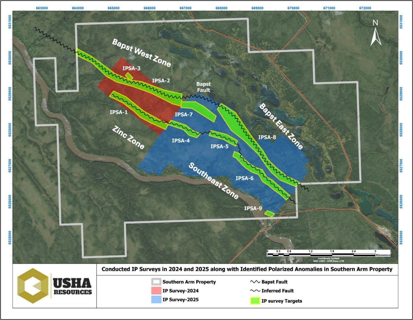 VANCOUVER, BC / ACCESS Newswire / March 27, 2026 / Usha Resources Ltd. (“Usha”, “USHA” or the “Company”) (TSXV:USHA)(OTCQB:USHAF)(FSE:JO0), a North American mineral acquisition and exploration company, is pleased to announce the completion of a significant extension to its 2024 ground IP survey (See News Release, December 24, 2024) aiming to evaluate the potential of the three geophysical high potential zones, identified by the initial IP survey, and also enhancing target definition and focusing exploration efforts on identifying potential sulphide-associated mineralization at its Southern Arm polymetallic VMS property (“Southern Arm” or the “Property”) in the metal-rich northwest Abitibi sub province of mining-friendly Quebec province.