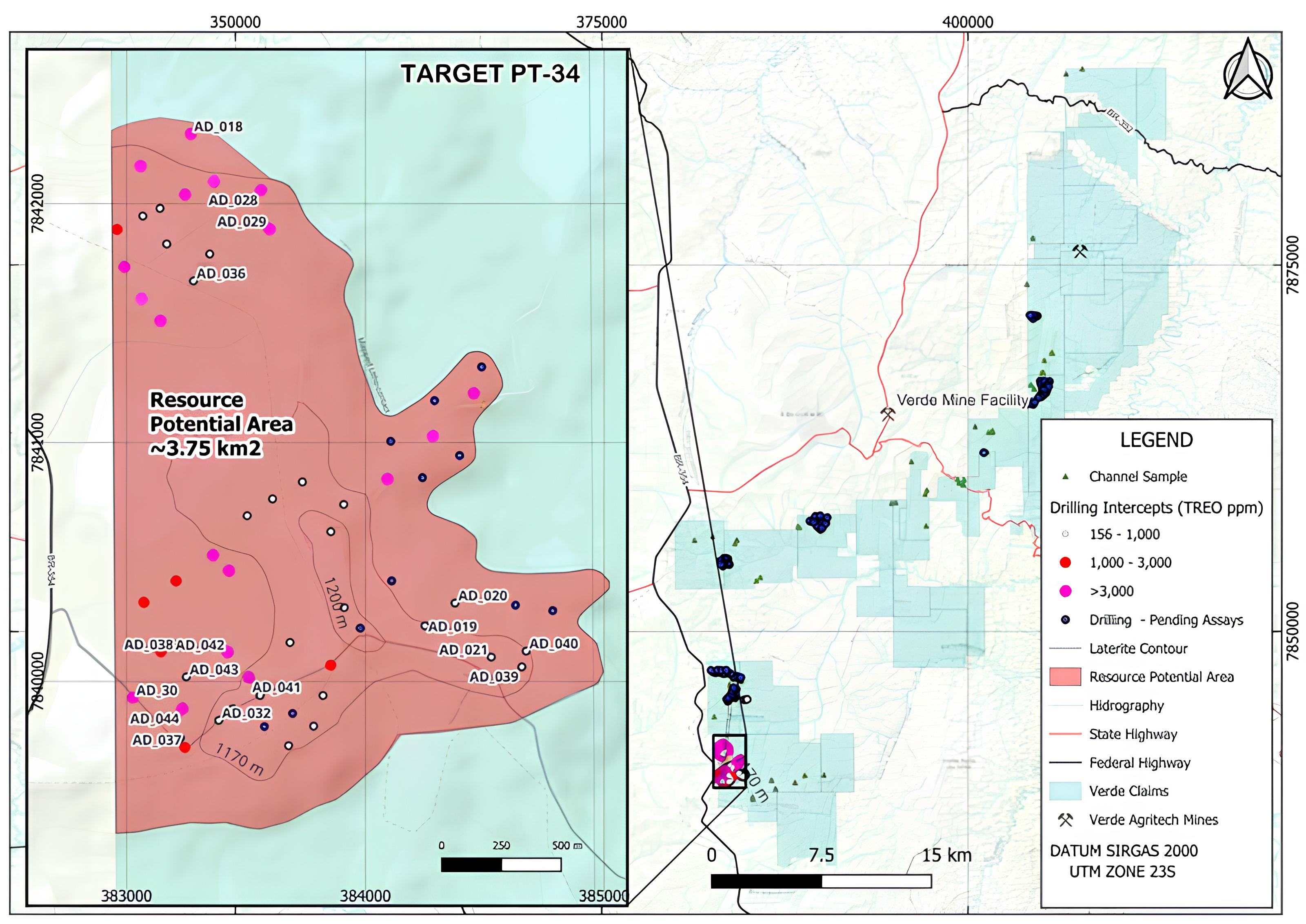 Notes: Assays are reported as head grades in parts per million (“ppm”). MREO includes Nd, Pr, Dy and Tb oxides. TREO includes all rare earth oxides. All holes are vertical (90°). Based on current interpretation of a gently undulating mineralized horizon, the reported intervals are interpreted to represent approximate true thickness. Coordinates are reported in SIRGAS 2000 / UTM Zone 23S.